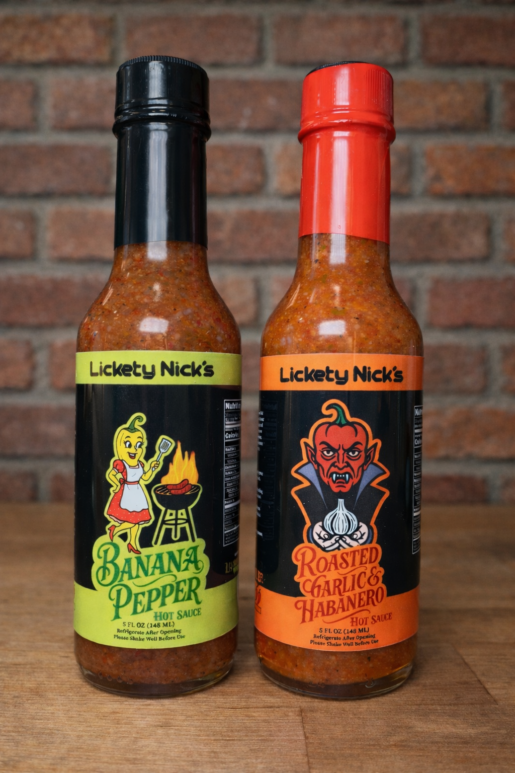 At Lickety Nick’s, we use fresh ingredients in our Banana Pepper,Verde, and Roasted Garlic & Habanero sauces — crisp peppers, bright herbs, and freshly roasted garlic for bold, garden-fresh flavor that hits different. Taste the freshness in every drop.